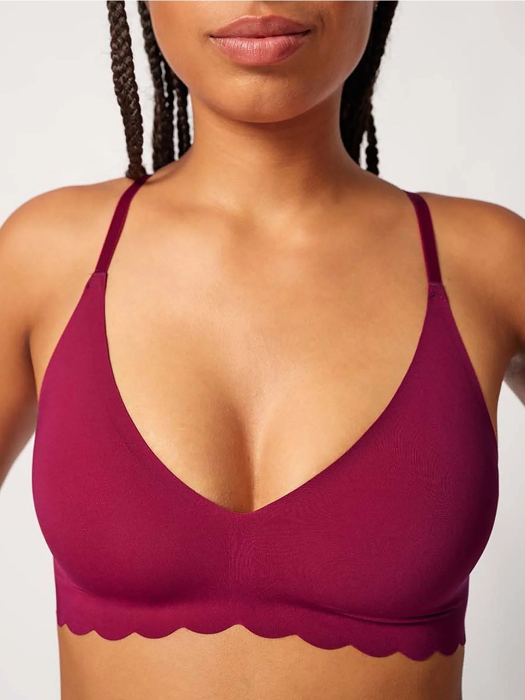 Jemné vroubkování a výstřih do V dodávají podprsence ženský nádech, který potěší nejen na pohled, ale i na dotek.