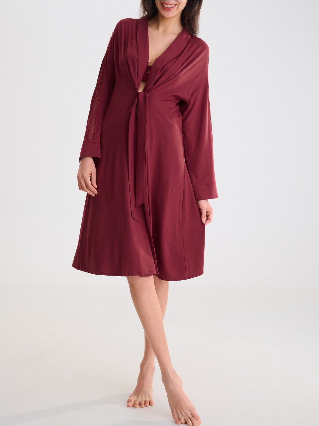 Dlouhé rukávy jsou po celé délce zdobené krajkou, která dodává županu jemný ženský nádech. Zakončené jsou širším nápletem pro větší pohodlí při nošení.