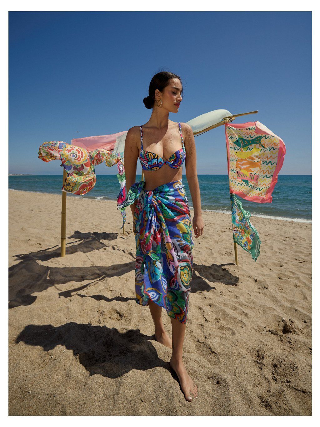 Pestrý květinový potisk dodá energii každému plážovému looku.