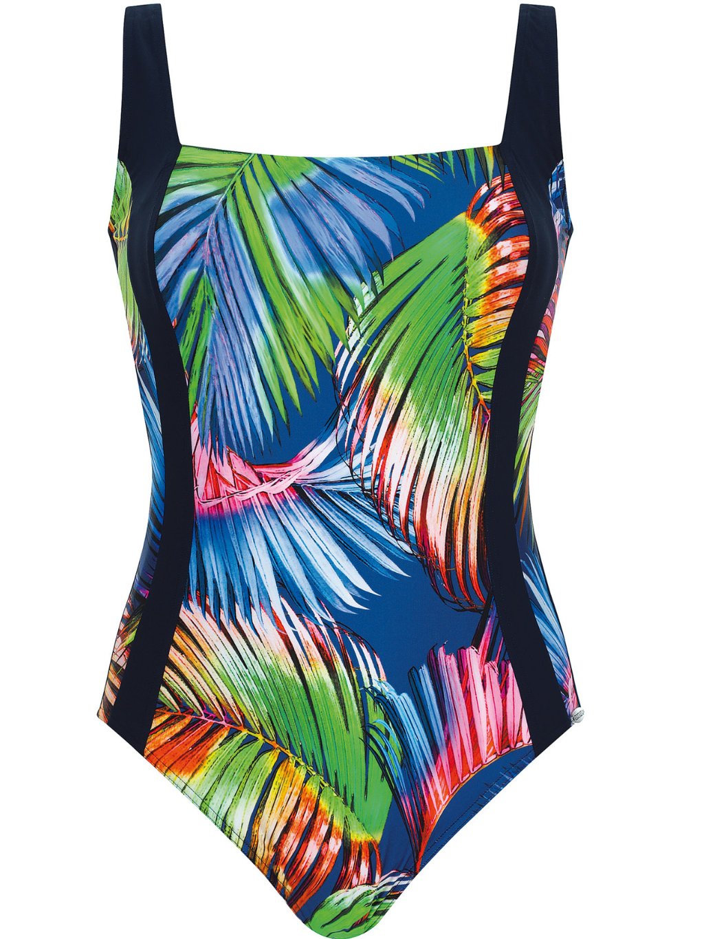 Barevně výrazný tropický motiv působí svěže, mladistvě a luxusně zároveň. Působivý vzor navíc opticky formuje postavu a podtrhuje ženské křivky.