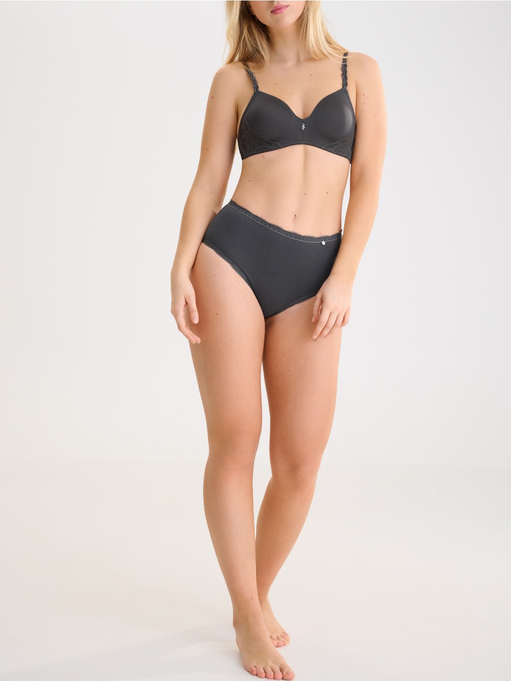 Bezešvé, tvarované pěnové košíčky bez kostic dokonale kopírují tvar poprsí a poskytují přirozenou oporu. Žádné otlaky, žádné nepříjemné hrany – jen hladký komfort po celý den.