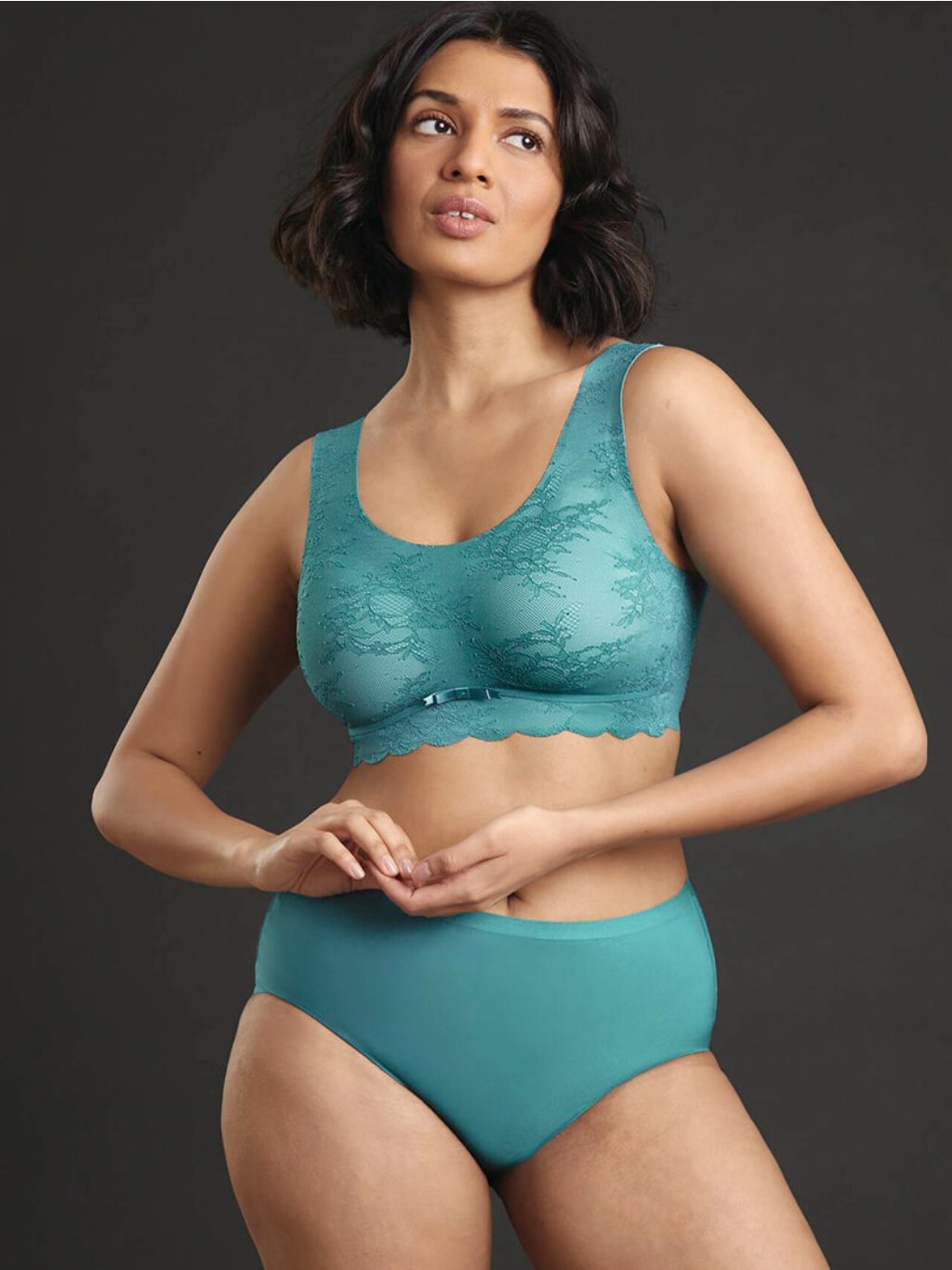 Dámy, když se spojí lehkost s elegancí, vznikne kousek jako ESSENTIAL LACE – podprsenka bez kostic, která v zelené barvě evokuje klid, svěžest a jemnou ženskost. Ideální pro chvíle pohody i běžné dny, kdy chcete být sama sebou a přitom se cítit krásně.